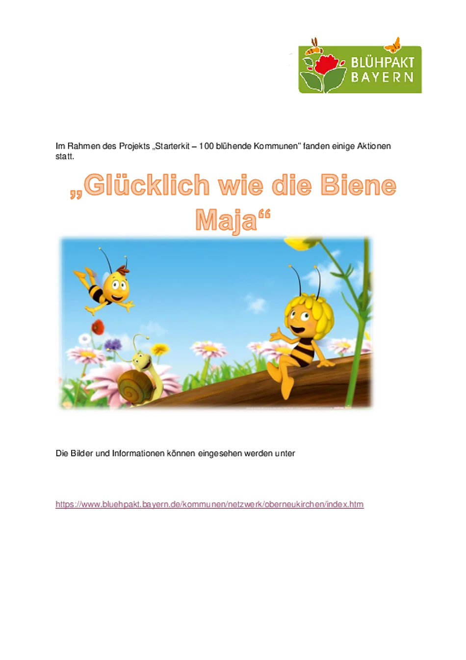 Im Rahmen des Projekts „Starterkit – 100 blühende Kommunen“ fanden einige Aktionen statt. Die Bilder und Informationen können eingesehen werden unter https://www.bluehpakt.bayern.de/kommunen/netzwerk/oberneukirchen/index.htm